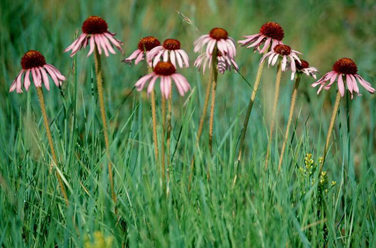 nueve especies diferentes de equinácea (pallida, angustifolia...) y